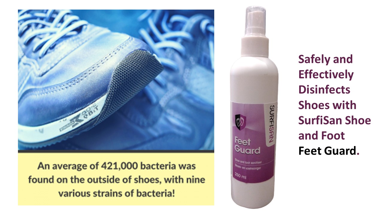 Shoe soles and feet are a potential vector of pathogen transmission Millions of germs are brought into the house and deposited on the floor and carepets with the first 3 steps through the door